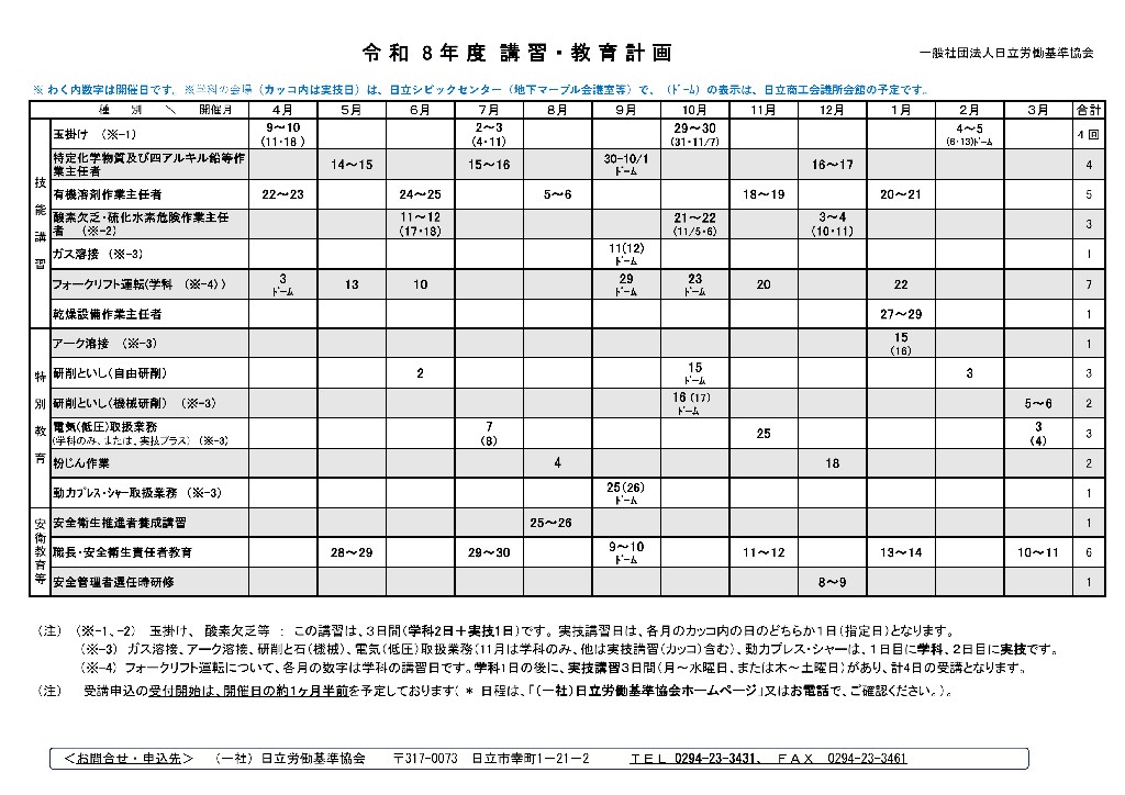 5.技能講習・特別教育の年間計画